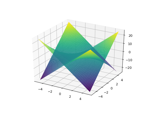 The following code plots a saddle and color it by the magnitude of its gradient:
